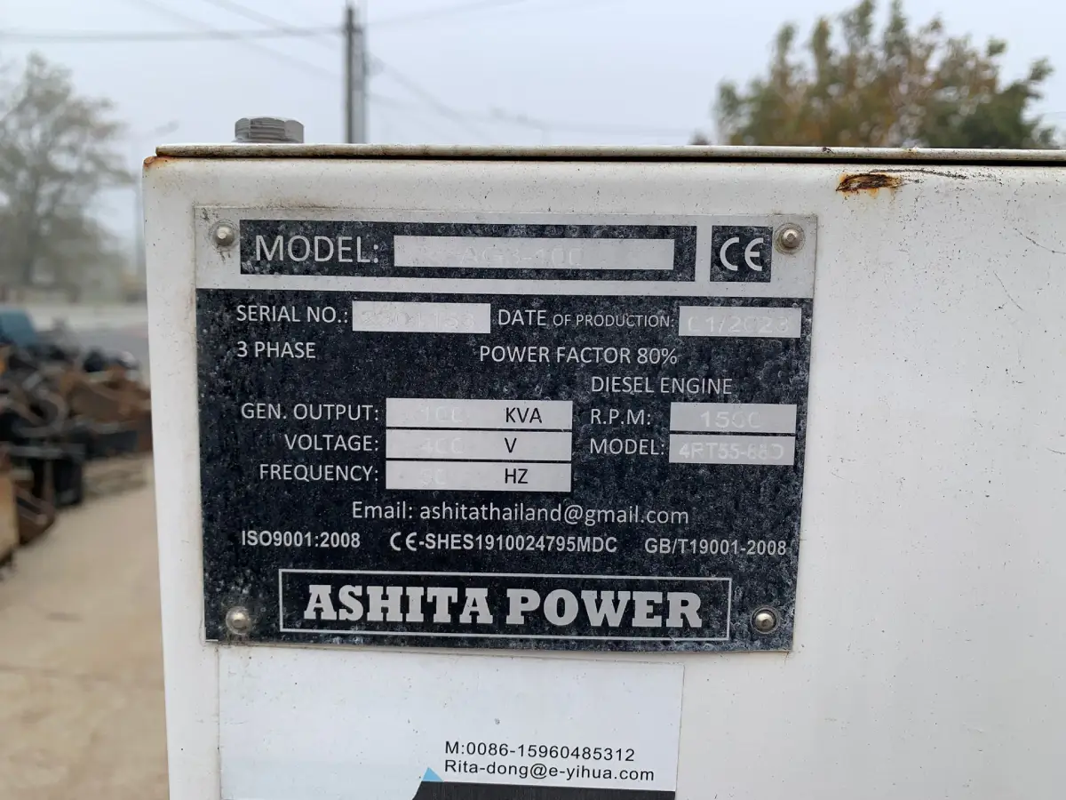 ÚJ Ashita AG3-100 generátor-aggregátor, 100 kVA, háromfázis, 4 hengeres diesel motor.