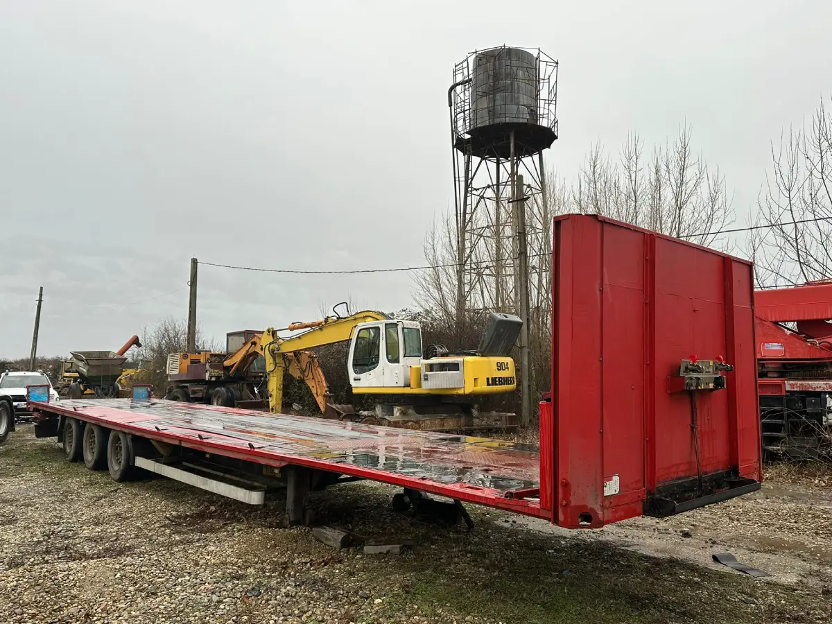 Van Hool 3 tengelyes félpótkocsi, 2000-es évjárat, 7 tonna önsúly, 13.9m hosszú, 2.5m széles, légpárnás felfuggesztés, azonnal munkára fogható állapotban.