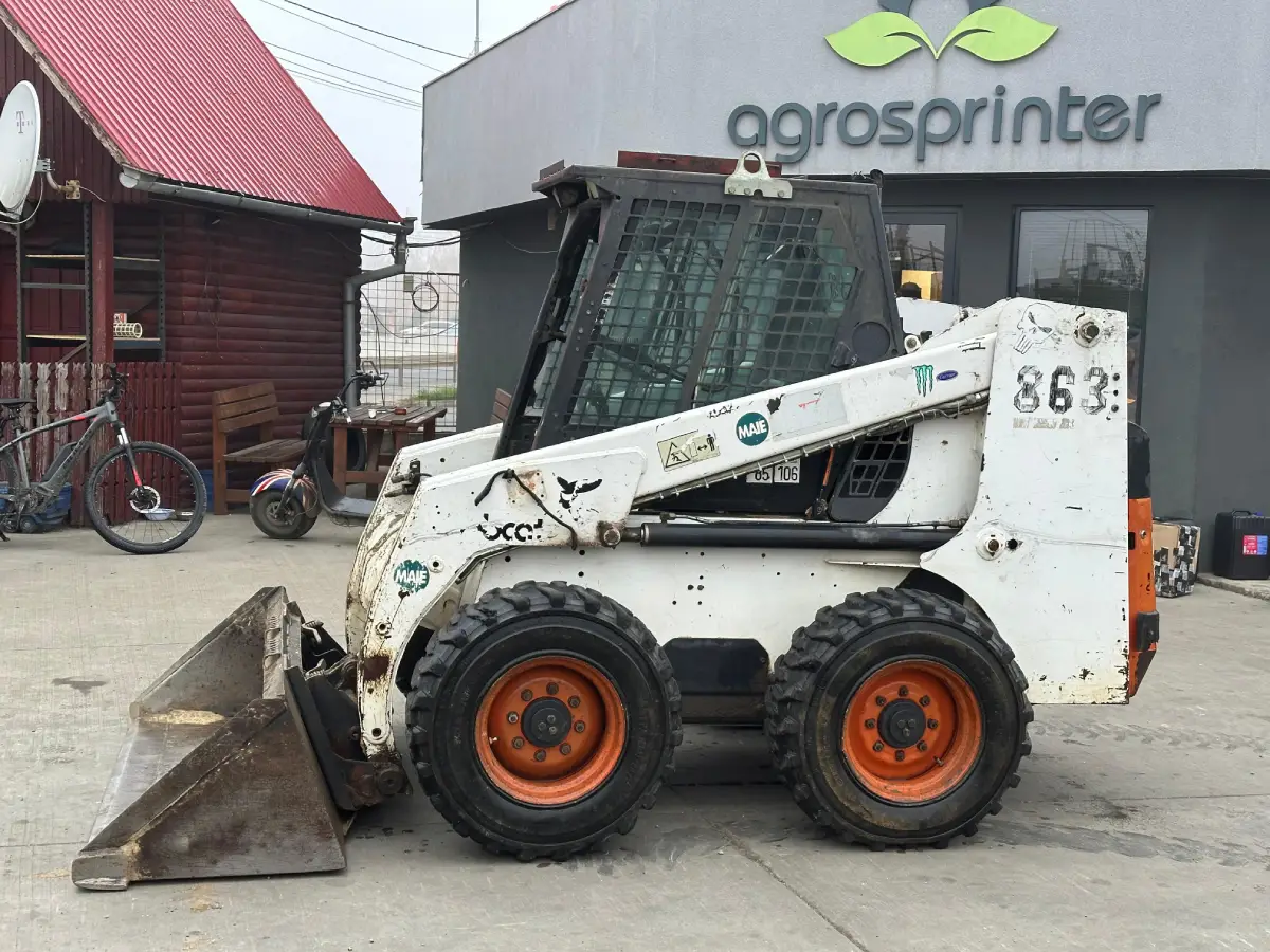 Miniincarcator Bobcat 863H, an 1997, 3.2 tone greutate proprie, motor in 4 pistoane de 55 kW Deutz, cupa de pamant, stare buna de lucru.