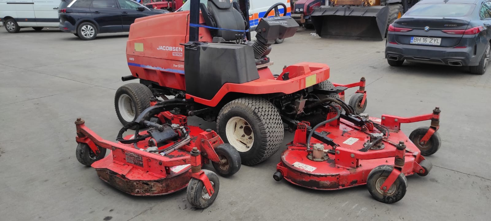 Masina de tuns gazon Jacobsen Textron HR5111, an 2005, 2200 ore, motor Kubota in 4 pistoane, tractiune 4×4, latime de lucur: 3.5 m, cauciucuri in stare bune, stare buna de functionare, recent adusa. Pretul afisat NU contine TVA!!!