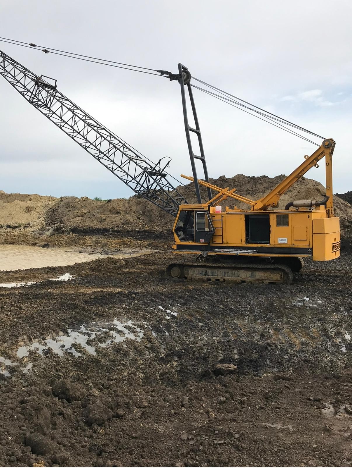 Draglina si macara Weserhutte SW191, an 1993, 10.000 ore, 75 de tone, motor Caterpillar de 165 kW in 6 pistoane, cupa de 3 m³, lungime brat 36 m, stare functionala buna, import recent. Pretul afisat NU contine TVA!!!